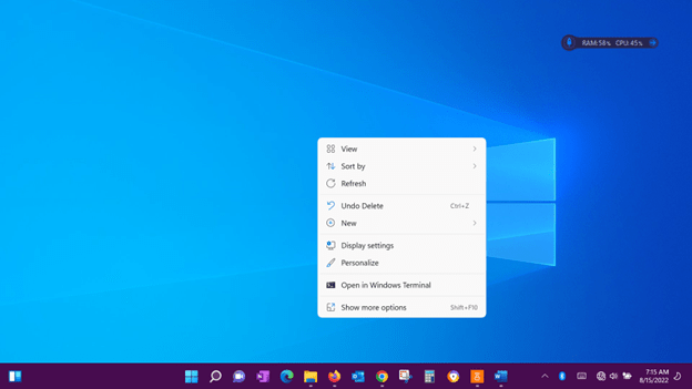 Step 1) Right-click your mouse on an empty part of your desktop. A menu will appear beside the mouse. Left-Click on the word “personalize.”