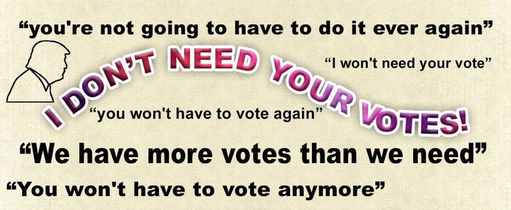 - Trump Explains Why He Told Crowd They Won’t Have To Vote